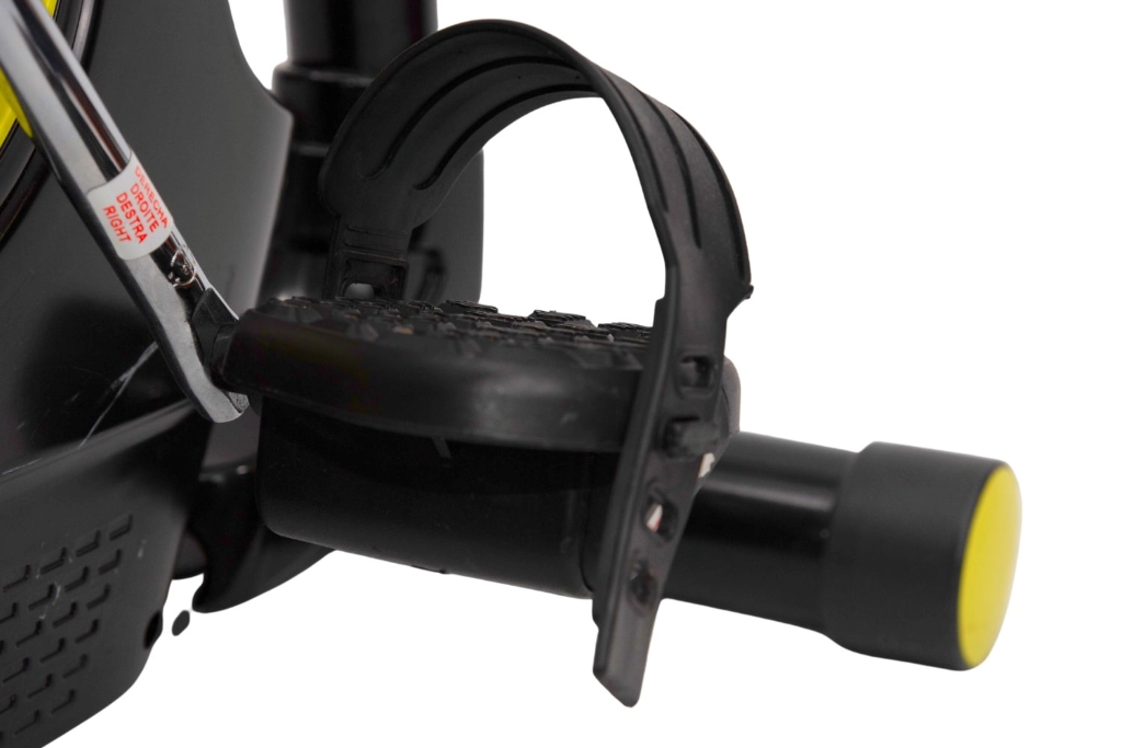 La cyclette ha una frenatura magnetica a otto livelli con volano da 4,5 Kg e trasmissione con cinghia Poly V che garantisce una pedalata più fluida e armoniosa. Quindi, c'è una regolazione manuale dello sforzo.