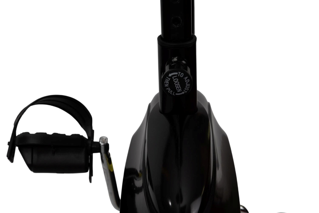 Sellino e manubrio sono regolabili ed è dotata di ruote di trasporto e piedini di livellamento, in modo da stabilizzare la cyclette in caso di pavimenti poco omogenei.