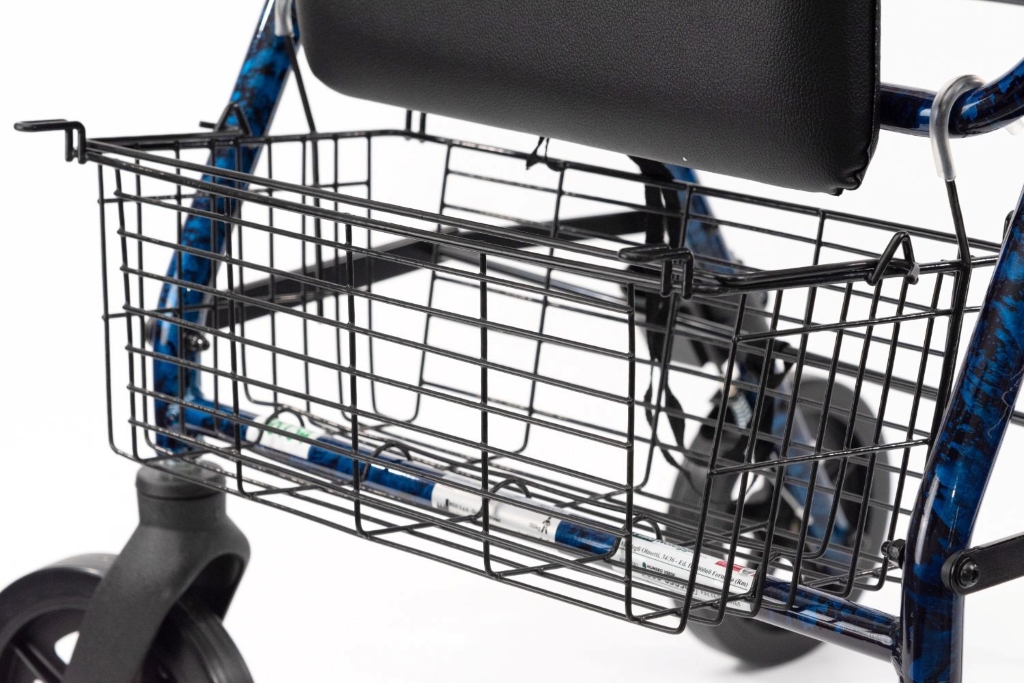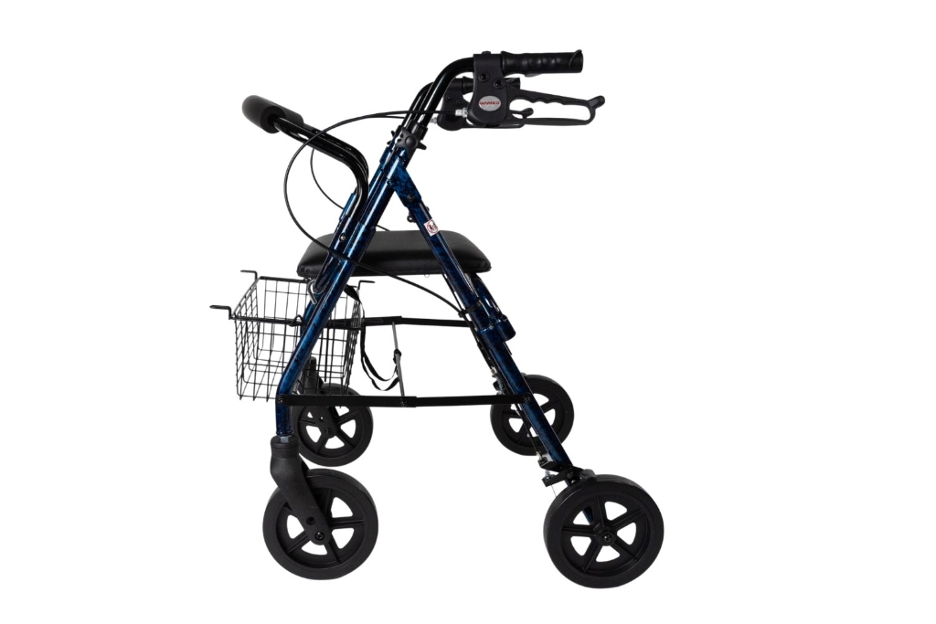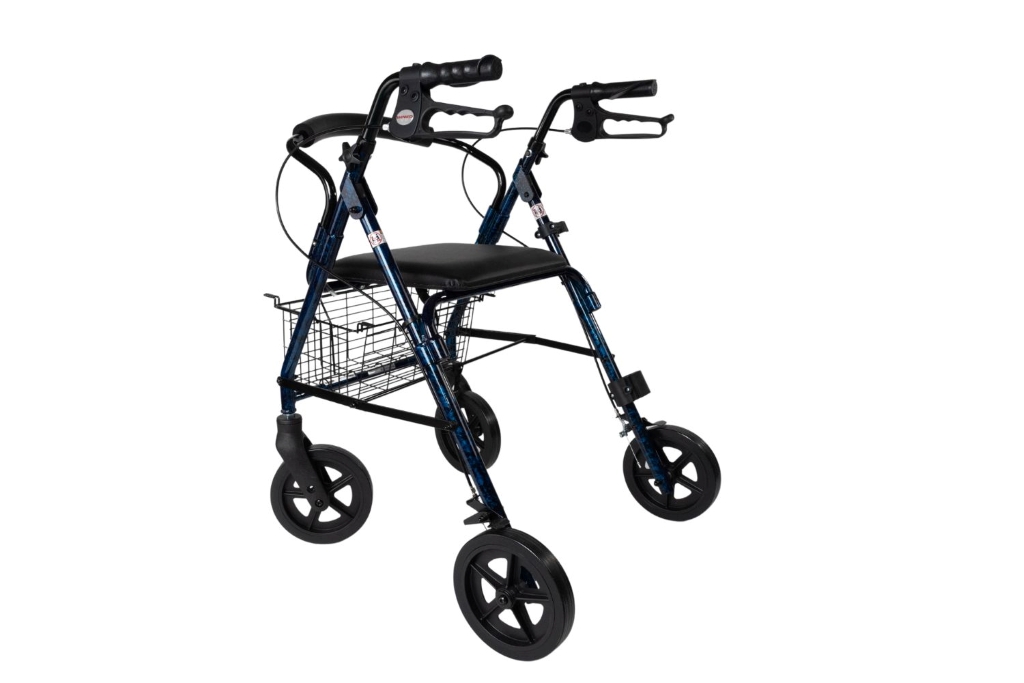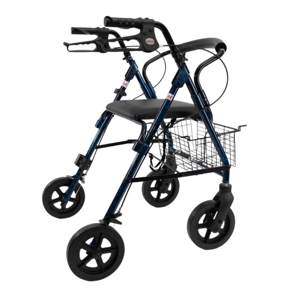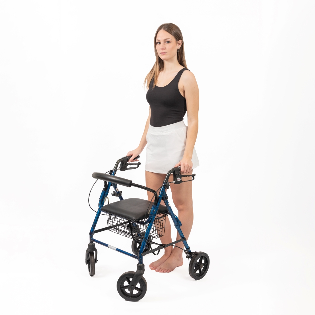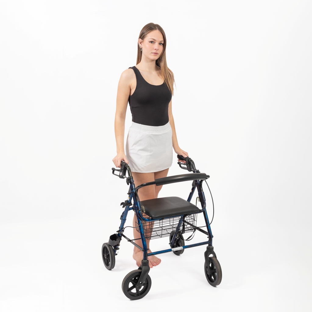 Il deambulatore quattro ruote con freno è un ausilio per la mobilità progettato per offrire maggiore stabilità e sicurezza durante la camminata.